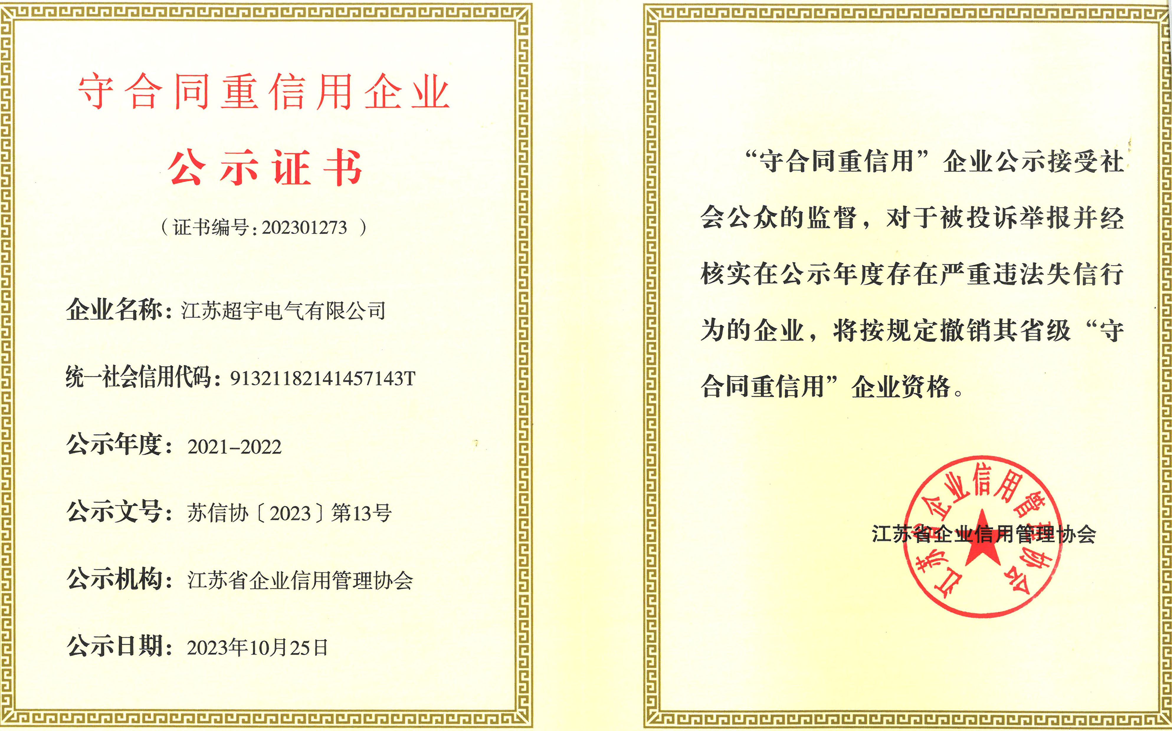 江蘇超宇電氣有限公司地處繁榮富饒的長江金三角,座落在聞名遐邇的生態示范區水上花園城市--揚中。公司成立于一九九六年,經過二十多年的發展進步,目前已形成專業化生產制造規模。 公司現有注冊資金3.0... ... [詳細>>]